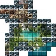 Das Wasser rauscht hier in Strömen den Berg hinunter. Wie auch immer die Oase entstanden ist, sie hat völlig fremdartige Lebewesen hervorgebracht, die sich perfekt an die Natur der Oase angepasst haben. So scheinen kleine Fische mit leuchtenden Floßen die Wasserfälle nach oben zu schwimmen. |
